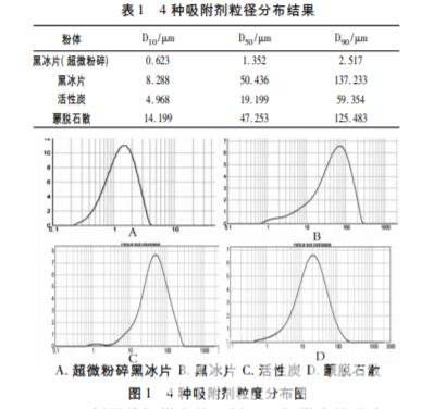 蒙藥黑冰片( har gabur) 為豬科動(dòng)物野豬 Sus scrofa L. 的干燥糞便,經(jīng)密封煅成炭用,有消食、平 息“希日”、殺“粘”、破痞之功效,用于寒“希日”病, 消化不良,黃疸,“希日”痞,“希日”疫、“粘”疫,胃 “希日”癥,“粘”痧等病癥。活性炭具有較好的 吸附作用,黑冰片與活性炭外表很相似,但是黑冰片 在作為炭狀物的吸附性能方面卻很少有相關(guān)研究, 因此本文對(duì)黑冰片吸附性能開(kāi)展了一系列研究,比 較了不同批次,不同粒徑黑冰片的吸附性能,并與活性炭、蒙脫石進(jìn)行比較,為探索其治療作用機(jī)理以及 新制劑、新功效的開(kāi)發(fā)提供實(shí)驗(yàn)數(shù)據(jù)支持。