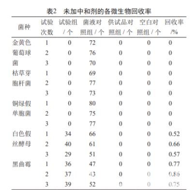 分別以 4.0% 聚山梨酯 80 和 2 mol/L 氯化鎂為中和 劑,各組每 100 ml 培養基中加入了 5 ml 中和劑,其余 按 1.4.2 操作。