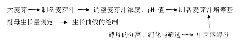 用接種環將從冰箱中取出的試管斜面的表面刮取一 環 DM3 酵母菌,接入到 5mL 用麥芽汁培養基干粉制成的 麥芽汁培養基中,活化培養,重復操作至十二組。在 20℃的 恒溫培養箱中培養 36h,在培養期間搖瓶轉速調整為 150rpm;選取發酵情況比較旺盛的試管培養基進行平板劃線操作,在 20℃的溫度下培養 36h;從平板中挑取的形態較 為飽滿健壯的菌落接種至 10mL 麥汁培養基試管中進行培 養。重復以上操作至少三次。用接種環刮取最終篩選出的 試管的菌種,在平板培養基上進行劃線操作,調整恒溫培 養箱為 20℃,將劃線的平板放置其中培養至長出菌落,備用。