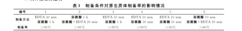 基因組shuffling過程中的關(guān)鍵步驟在于原生 質(zhì)體制備與再生,本實驗中首先確定了制備和再生的培養(yǎng)基的種類?方法和滲透壓穩(wěn)定劑.另外酶解 的溫度?時間和酶解前預(yù)處理的因素見表1所示. 結(jié)果表明,在制備原生質(zhì)體時,EDTA 預(yù)處理細胞 可以提高細胞壁酶解的效率.通過實驗結(jié)果,本文 最終選擇的滲透壓穩(wěn)定劑為0.3mol/L的甘露醇, EDTA 預(yù)處理10min,酶解時間30min,原生質(zhì)體 再生采用自然擴展法。